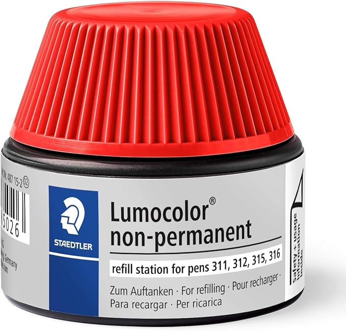 STAEDTLER Lumocolor 487 15 Universal Pen Refill Station for 311/312/315/316, 15-20x Refill, Red